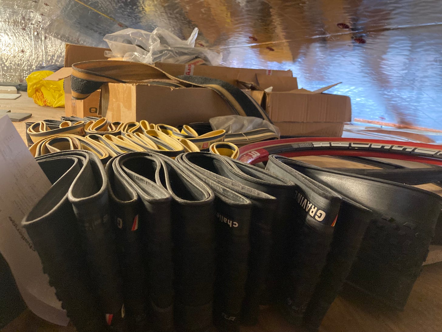 The aging in cellars for 1 or 2 years for these products is optimum. Even longer periods than this, we have seen in CX, with Wout [Van Aert] and others using old tubulars with Michelin mud tread. Those had to have been stored for some years (at least 5). It depends on how the product is kept.